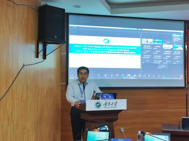 自治区反刍动物分子细胞育种重点实验室主任马云教授和畜牧学科马燕芬研究员等老师以及部分博硕士研究生参加了本次会议,马云教授应邀做了题为“中国几个地方牛种资源IMF沉积关键基因的挖掘及其调控机制研究”的主题报告。