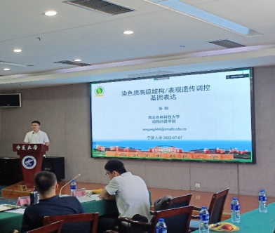 畜牧学科带头人马云教授主持。王小龙、王禹和任刚三位教授分别做了题为“羊分子设计育种研究进展”、“反刍家畜复杂性状及环境适应性遗传基础解析”和“表观遗传调控基因表达的机制”的精彩学术报告,拓宽了师生的学术视野。