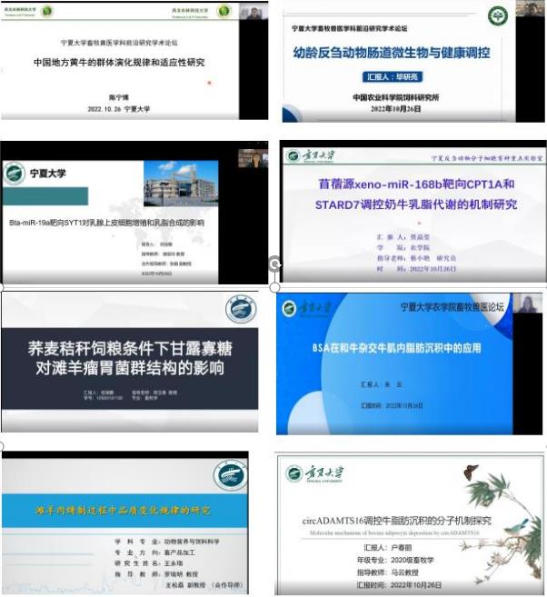 畜牧兽医学科第一届研究生学术论坛以腾讯会议形式顺利举行。论坛聚焦畜牧、兽医学科发展前沿和研究热点,注重培养科学精神和科研素养,以助力宁夏畜禽优势特色产业发展为目标。学科邀请知名专家进行讲座和学生开展学术报告,以促进研究生对学科研究前沿和热点问题的了解,掌握学科最新研究方法和技术,培养科研思维,提升创新能力。