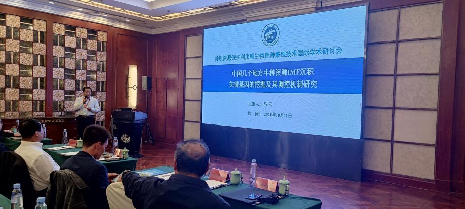 亚热带农业生态研究所印遇龙院士、全国畜禽良种产业技术创新联盟、中国农业大学张沅教授,香港大学刘澎涛教授,英国埃克塞特大学郭歌博士,赛科星研究院院长、内蒙古大学李喜和教授,等国内外知名专家、学者和研究生200余人,参加了会议。与会专家学者就种质资源保护与开发利用、生物育种与繁殖技术、生物进化与遗传前沿等专题进行深度交流,并对当前中国在奶牛育种领域取得的成果,以及面临的困难做了详细的分析与探讨。我校自治区反刍动物分子细胞育种重点实验室主任马云教授应邀参加会议并做了题为“中国地方牛种资源IMF沉积关键基因的挖掘及其调控机制研究”的会议报告。