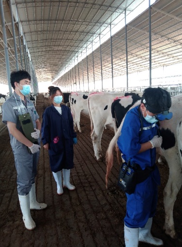 马云教授团队成员冯雪博士六月初就带领多名硕士生驻场进行准备工作,主要对牛舍环境、奶厅环境、奶牛产奶量和健康状况等进行前期整理,筛选供体牛,为后期OPU-MOET及克隆胚胎移植工作的实施奠定基础。本次克隆胚胎移植工作首先通过奶牛体细胞培育克隆胚胎,同时在盛澳源农牧有限公司保留自然发情的青年受体母牛50头左右,根据黄体检测进行受体牛群筛选与移植,预计于2023年6月底产犊并统计产犊率。