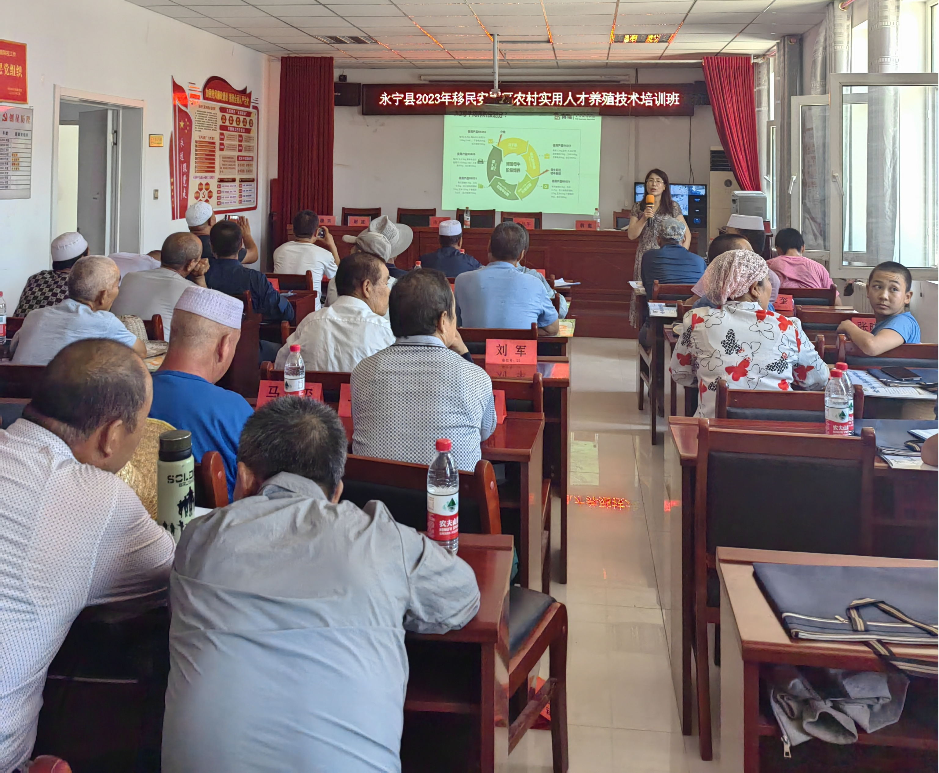 为提升乡村振兴与农民养殖素质,推进高素质农民养殖工作,百家乐在线 马燕芬研究员受邀参加永宁县举办的“永宁县2023年移民安置区农村实用人才畜牧养殖培训”活动,并于2023年7月25日在永宁县闽宁镇园艺村村委会开展了关于“肉牛粗饲料调制和肉牛...