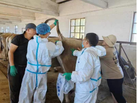 在新疆畜牧相关部门大力支持下,团队师生前往新疆塔城和伊犁昭苏地区进行实地调研走访新疆褐牛核心育种场,对新疆褐牛类群、主产地和培育现状进行了考察;此外,在于跃武副总经理、黄锡霞教授和绍伟副教授配合下顺利开展新疆褐牛血液和瘤胃液的数据采集工作。