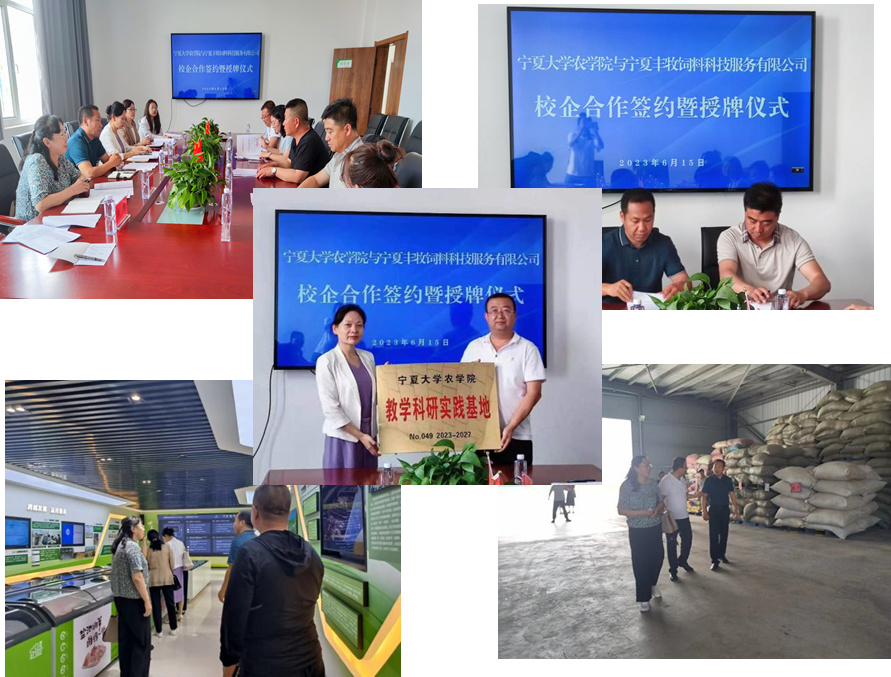 副院长徐晓锋和周玉香教授等人与宁夏丰牧饲料科技服务有限公司代表人李焱龙副总经理等人进行了校企合作签约授牌。在签约仪式上,双方就高校、企业人才培养、输送以及盐池滩羊产业发展等重点问题进行了深入的交流探讨,初步达成了“高校+人才+企业”三合一的培养模式。双方均表示将借此契机,充分利用校企双方优质资源,进行高校和企业的优势互补,进一步加强高技能人才的培养,促进人才培养供需双向对接,实现校企合作共赢,推动滩羊产业乃至畜牧业的高质量发展。