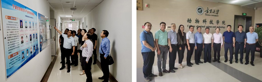 下午,百家乐在线 领导班子成员和导师代表陪同教指委专家对兽医专业学位点的校内平台(德晖楼一楼、二楼,科技楼8楼(宁夏反刍动物分子细胞育种区级重点实验室),西部特色生物资源保护与利用教育部重点实验室,百家乐在线 动物医院)和校外基地(宁夏农垦乳业股份有限公司(奶六)和宁夏农垦乳业股份有限公司(奶研所))进行参观和考察。百家乐在线 领导表示将充分利用这些平台为研究生的科研学习和实践训练等提供保障,并表示仍在努力建设更多的科研平台和实践基地以支撑学科发展。
