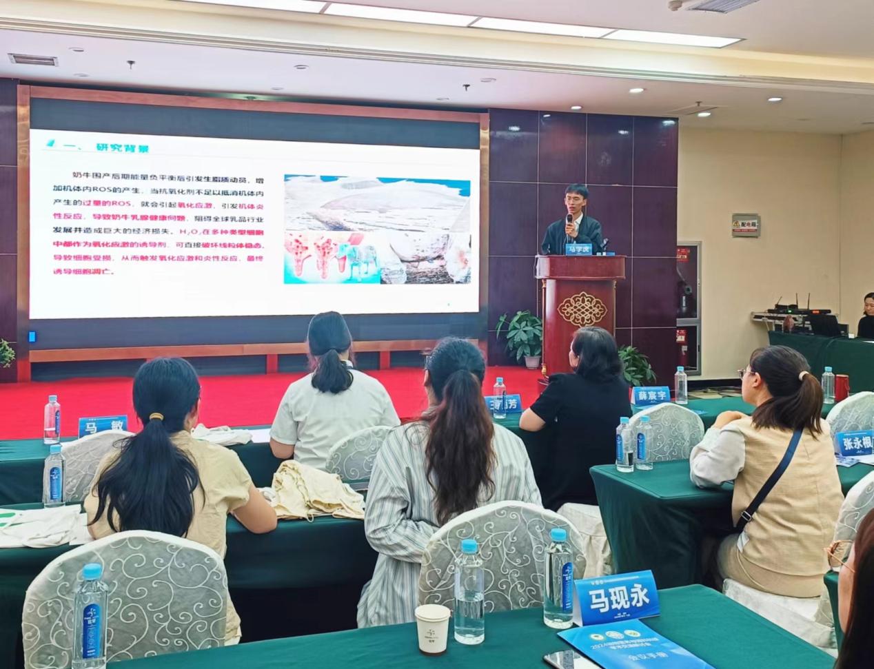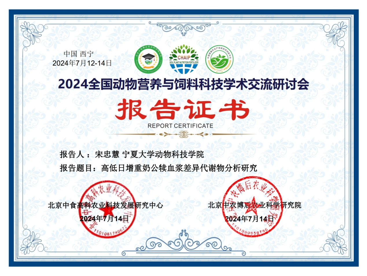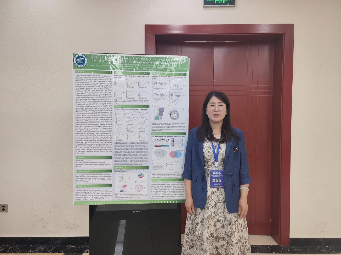 等多所高校的业界著名专家、企业家、青年才俊和博硕士研究生针对奶牛、肉牛、家禽、猪、羊等动物的肠道健康、营养调控、肉质评定等方面进行了汇报交流。百家乐在线马燕芬研究员指导的博士研究生马学虎以《EGCG缓解氧化损伤奶牛乳腺上皮细胞的研究》为题作口头报告、硕士研究生曹佩佩以《基于16s rDNA和代谢组学揭示调控犊牛腹泻的关键微生物和关键代谢物》为题作口头报告、硕士研究生宋忠慧以《高低日增重奶公犊血浆差异代谢物分析研究》为题作口头报告、硕士研究生马敏以《基于代谢组学探究围产期奶牛血液代谢物及主要代谢通路分析》为题作口头报告、博士研究生户春丽以《Differences in fecal microorganisms and metabolites in dairy male calves of different daily gain weights revealed by 16s rRNA-based and untargeted metabolomies》为题作墙报展示。通过参加本次学术讨论会,不仅加强了团队师生的学习交流能力,又对当前我国动物营养与饲料科学领域热点有了更为深入的了解。为百家乐在线与国内知名学者提供了一个交流平台,并为人才培养提供了新的策略,更为团队今后科研方向提供了新的思路。