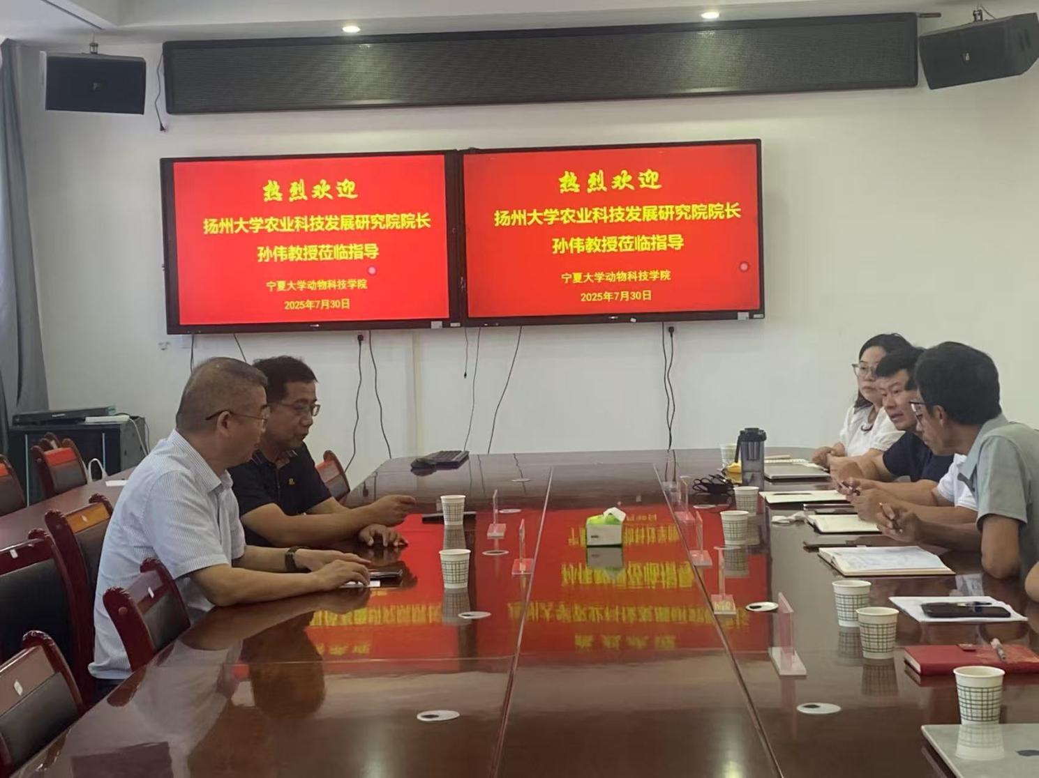 7月30日上午扬州大学农业科技发展研究院院长孙伟教授来百家乐在线进行交流,百家乐在线