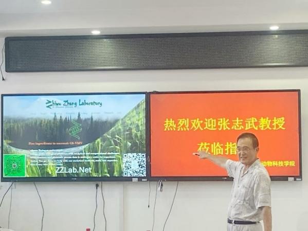 在动物育种领域的研究基础与发展规划。随后,张志武教授以《全基因组关联分析与全基因组选择的整合》为题展开分享,系统阐释了全基因组关联分析的核心原理、全基因组选择的技术路径,并深入解析了两种方法联合应用于分子育种领域的实践案例,为在场师生呈现了前沿研究动态与跨学科应用思路。