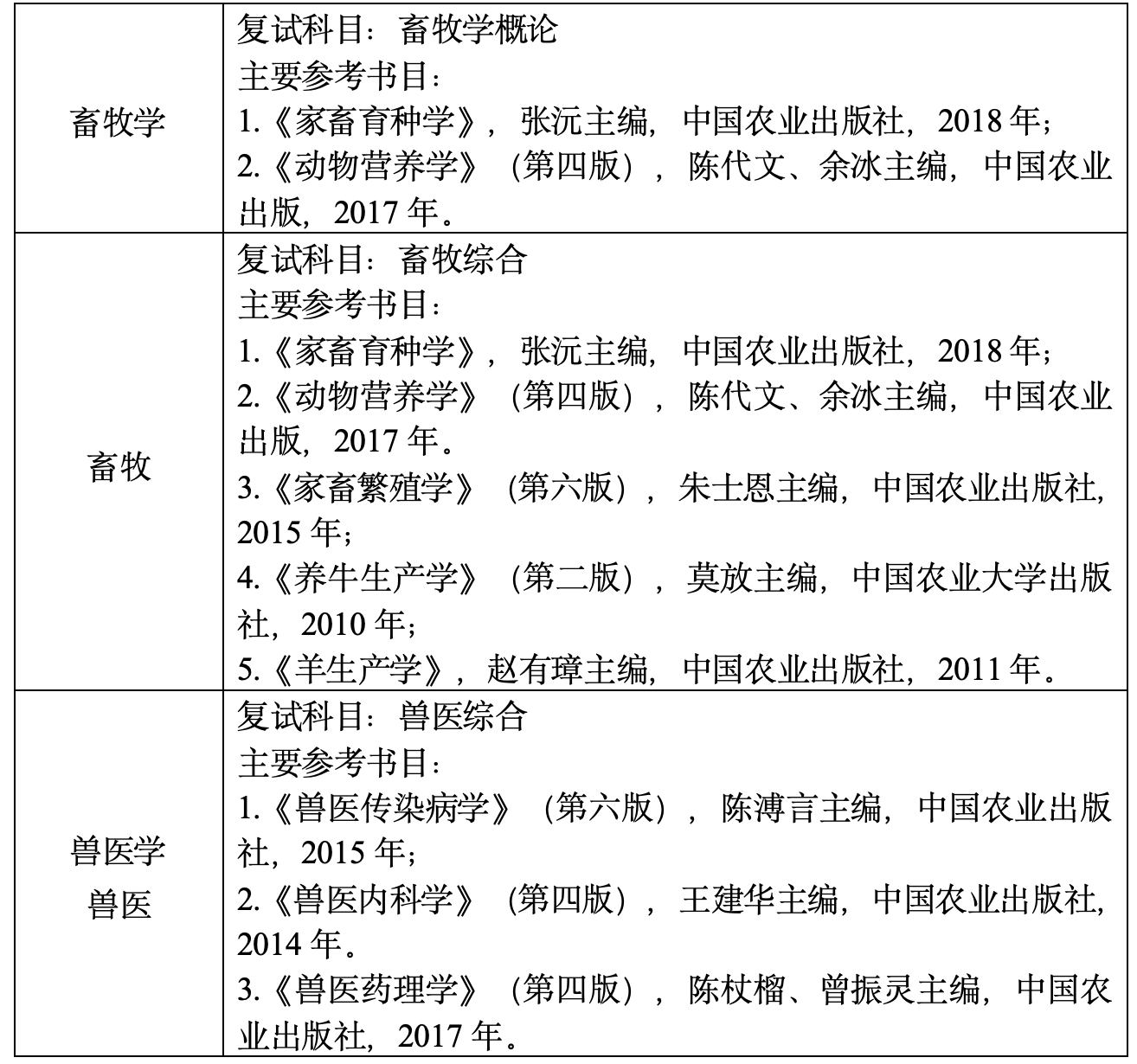 各学科(专业)复试科目如下: