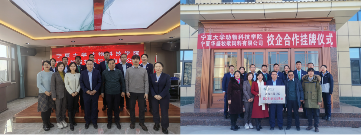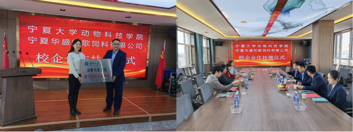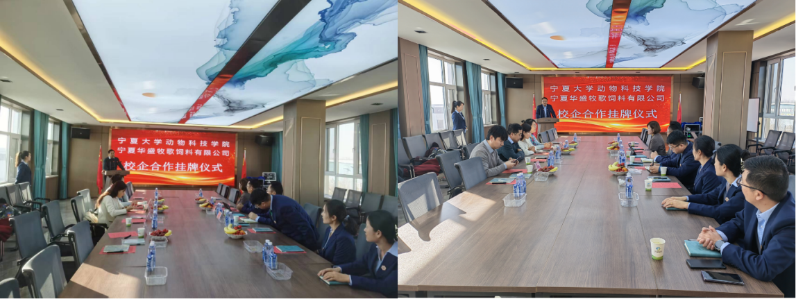 领导一行到宁夏华盛牧歌饲料有限公司举行校企合作授牌仪式。马云副院长首先进行致辞,他表示与宁夏华盛牧歌饲料有限公司的合作期盼已久,在参观调研过程中也发现了企业在助力自治区畜牧业发展过程中做了大量的工作,积累了丰富的生产一线数据。通过开展校企合作,联合培养畜牧业精英,共同为自治区畜牧业发展贡献力量。宁夏华盛牧歌饲料有限公司总经理王文卓表示近些年宁夏畜牧业发展迅速,急需培养一批畜牧业人才。百家乐在线
